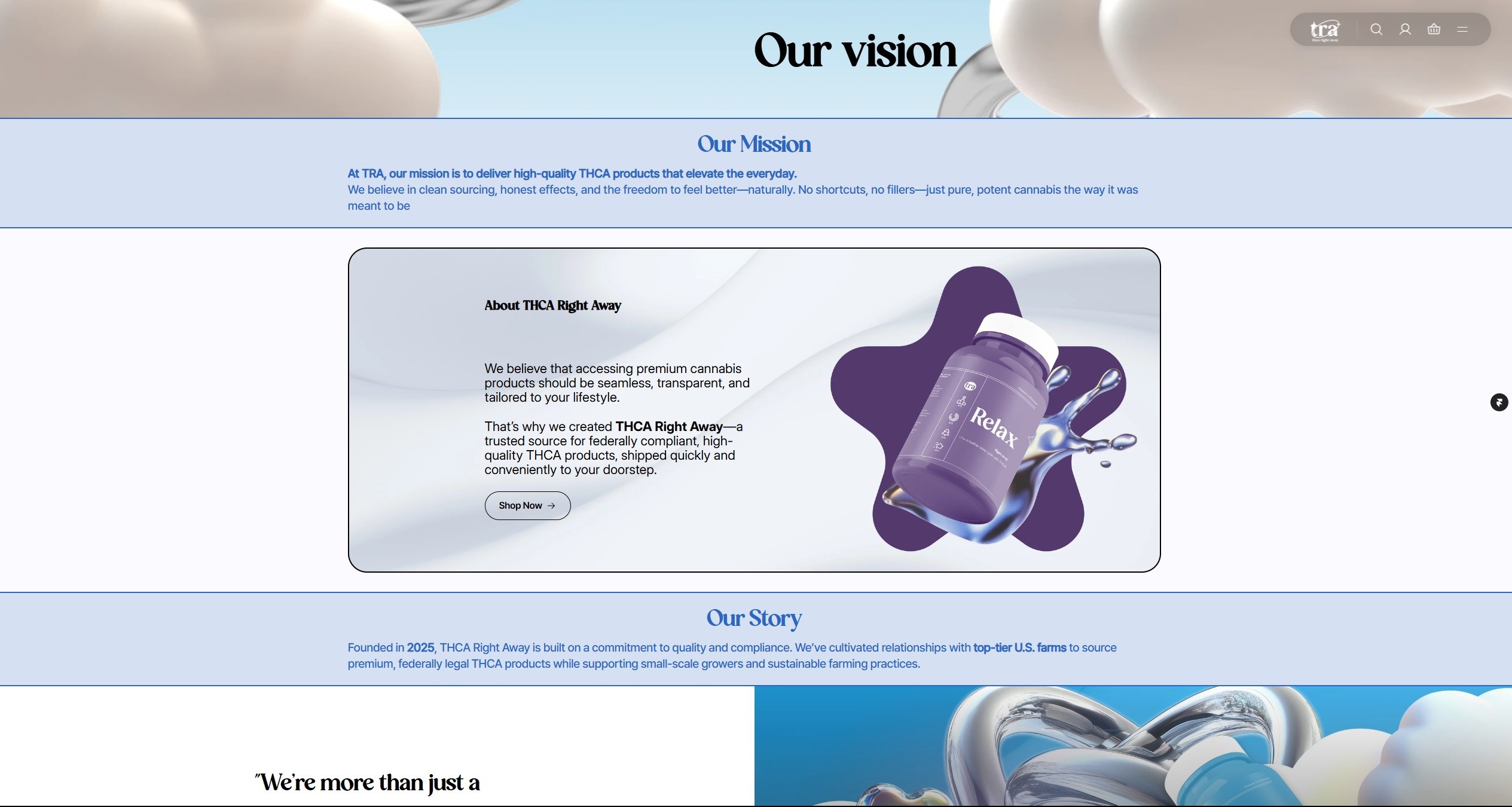 THCA Right Away’s design approach blends bold visuals with a clean, conversion-focused layout to support its ecommerce goals.